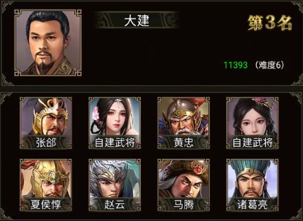张郃、黄忠、夏侯惇、赵云、马腾、诸葛亮、陈到和三位自建武将