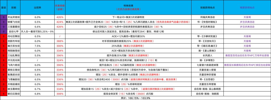 反击招数能学全学,当前全部反击共计91%反击率(其中归元护体功、幽冥护体功,收益较低,技能栏不够的一些时候会下场不用。);被动技能以重创&重创防御技能为主要学习目标,其次为识破、闪避、眼识等特殊词条,有意识去学习。因各玩家进度和氪度不同,这里就不给大家一一推荐了,如何找这些技能,可以详查叶神“小叶子”所著的江湖小数据资料。