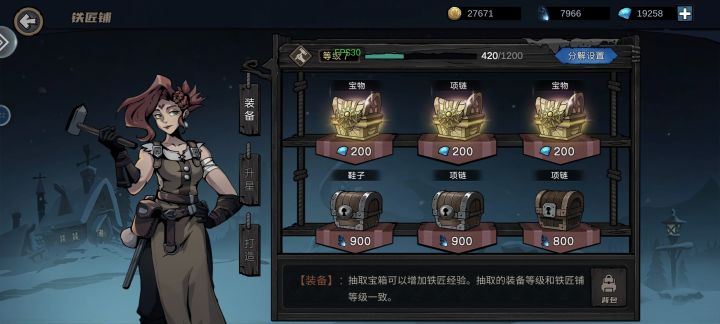 铁匠铺是游戏里装备产出的唯一出处,铁匠铺等级几级开箱子拿的就是几级装备,所以尽可能多开箱子把铁匠铺等级升高拿到的装备越好。