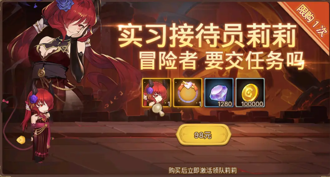 莉莉:领队礼包购买,初始能量+1,属性很好获取难度低