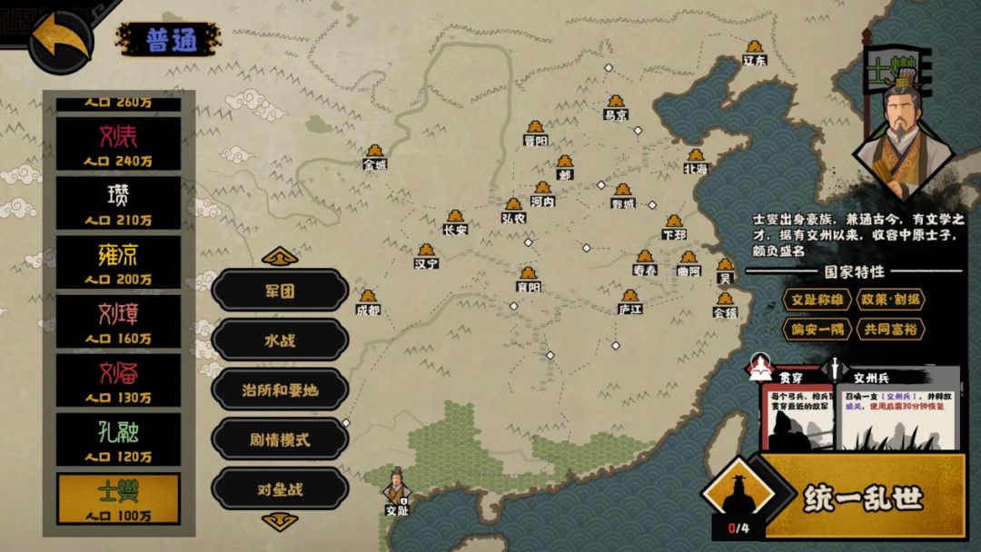 共同富裕:因为士燮势力曾经投诚孙权势力,所以个人推测该特性偏向会有臣服政策方略,共同增加钱粮资源产量。