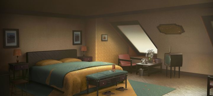 原因是原画中的行李箱和少量的空牙仙罐子,以及牙仙和个人剧情中一样的装束(注意床尾的大衣)