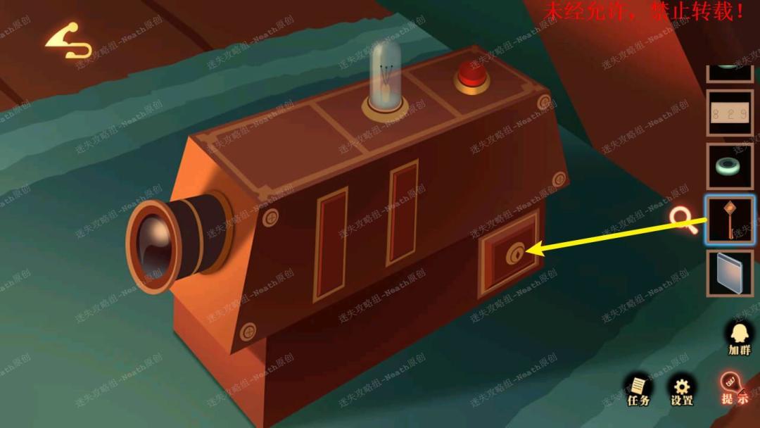 17、使用【黄铜钥匙】打开放映机右下角的暗格,拿走【珠子】。17