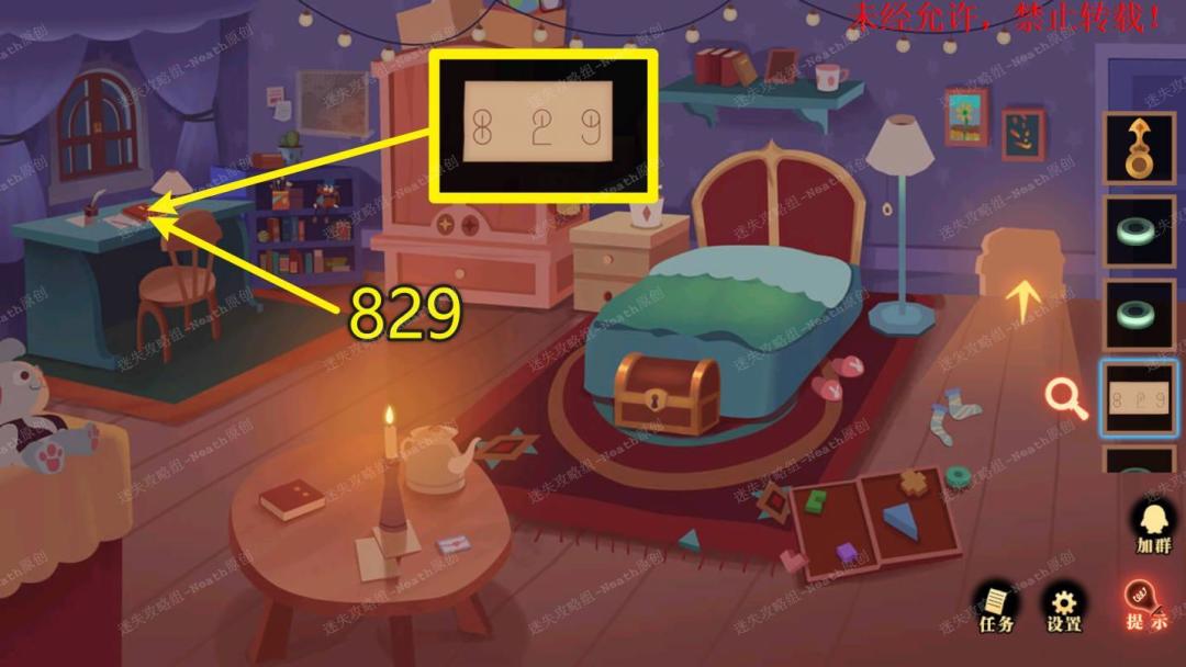 14、根据【撕下的纸片】上的数字829,打开自己房间桌子上的日记本,翻到最后一页,记住左边的线索,拿走右边的【黄铜钥匙】。14 14.1