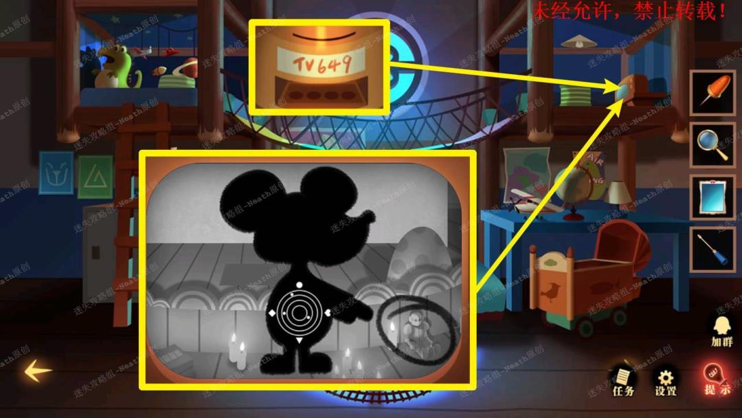 52、把【马蹄徽章】放入舞台中间的洞里,观察到一行字“TV649”。52
