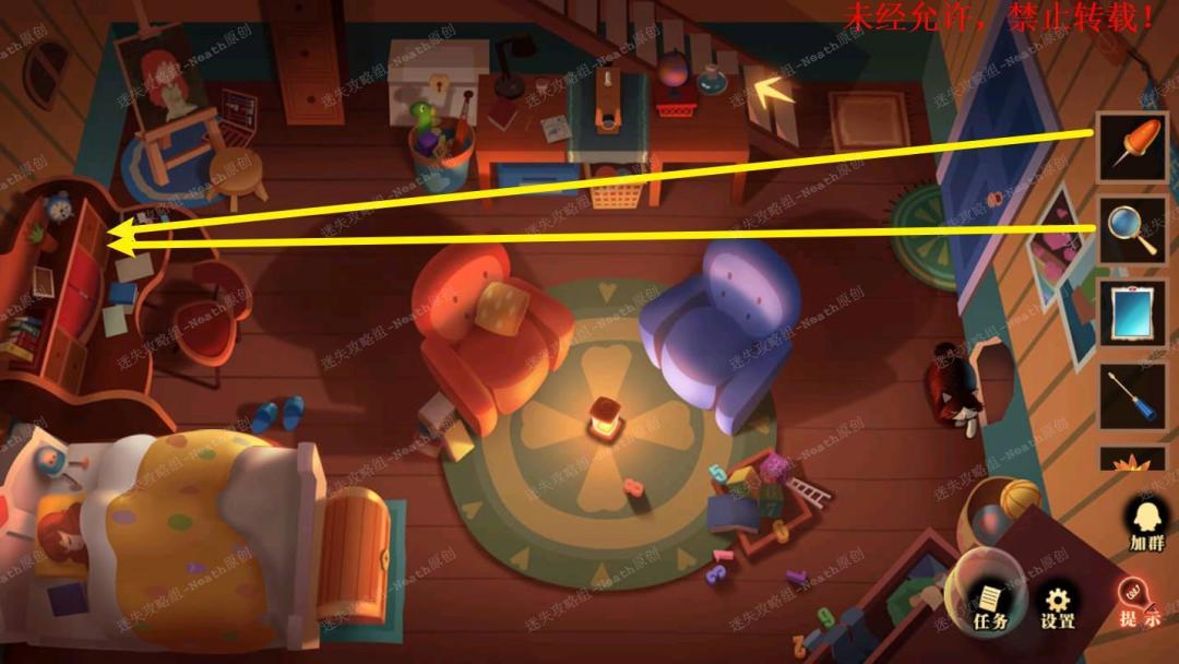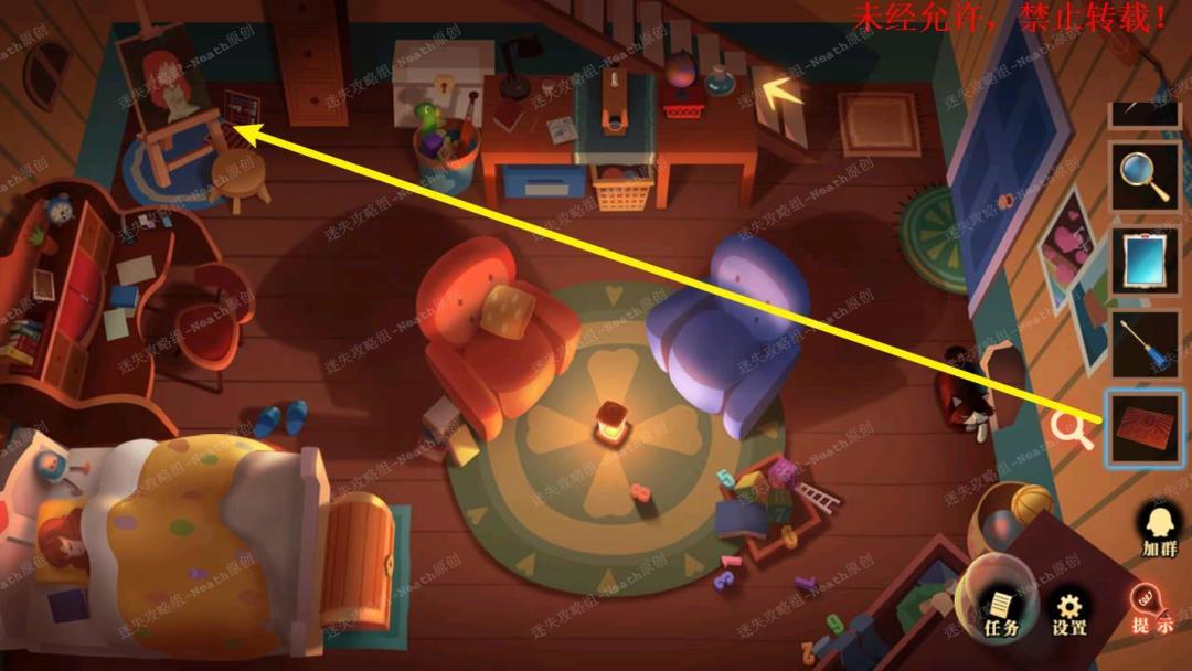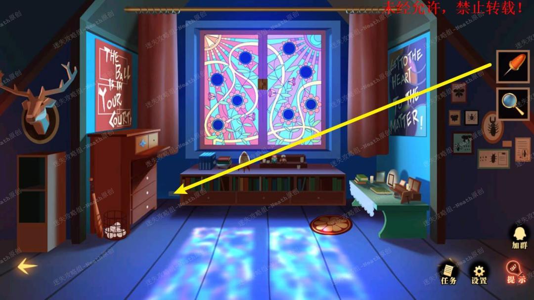 47、到姐姐房间,在桌子的右下角抽屉上舒勇【放大镜】然后用【锥子】打开,阅读线索得知两朵花的朝向。47