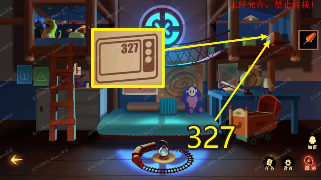 29、点击上方的电视,按下按钮打开电视,调整频道到327,得到暗格位置线索。29
