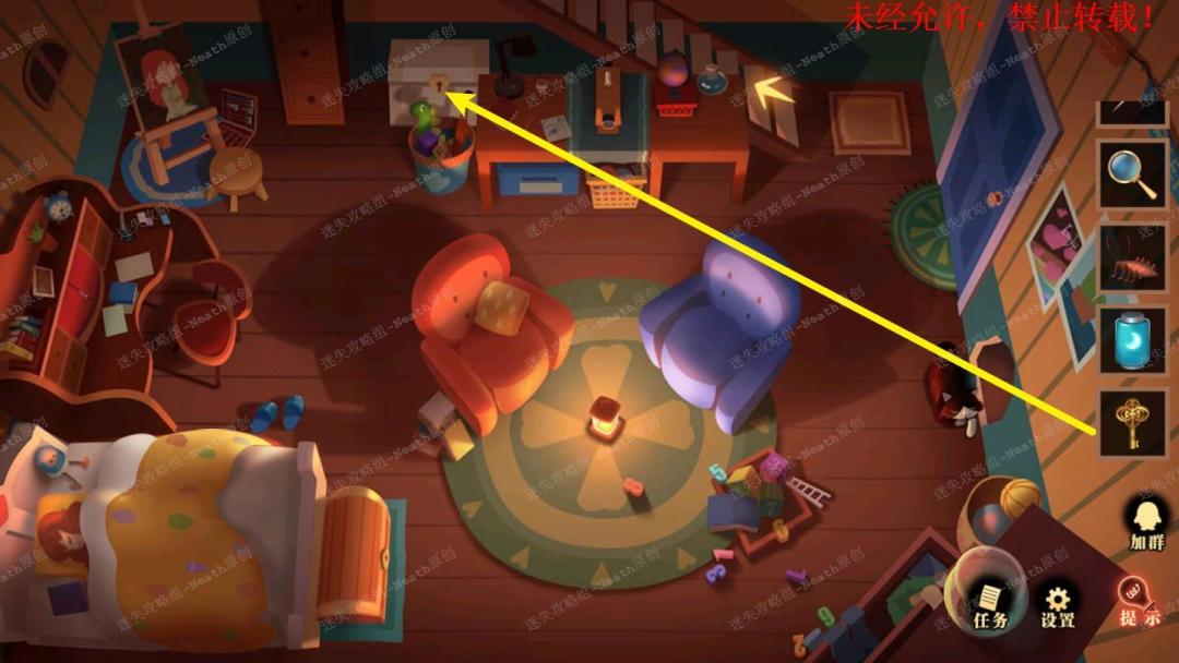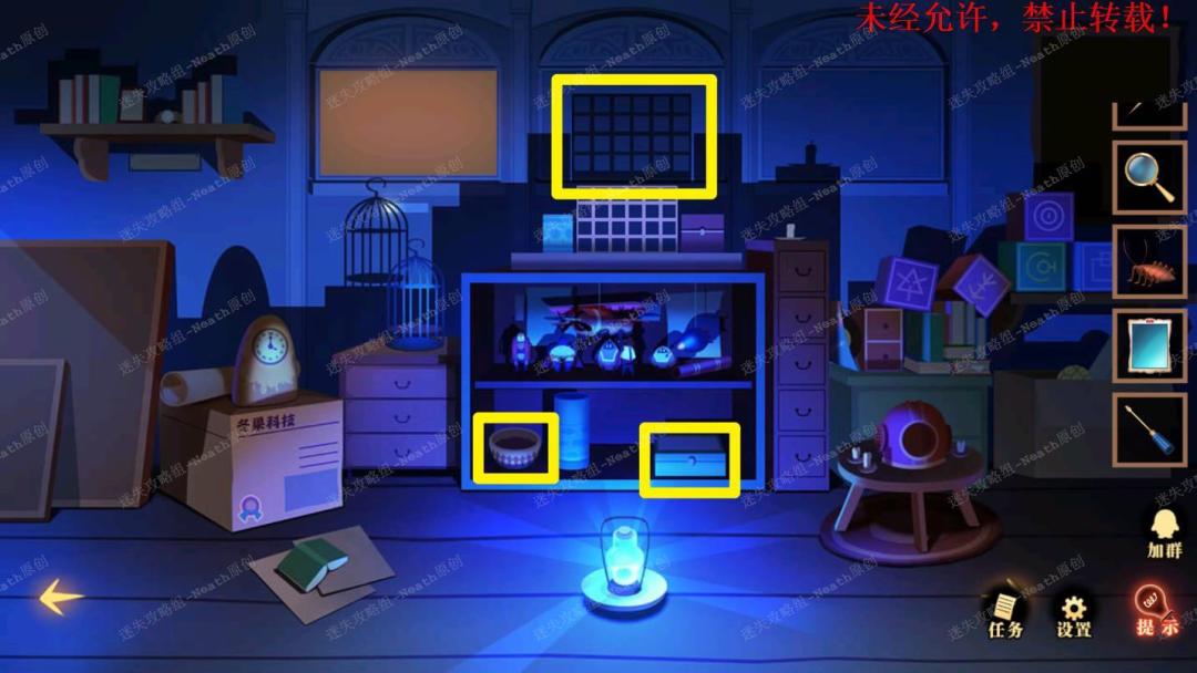 45、到姐姐房间,点击右下角的鱼缸,进入小游戏,规则是找出每一轮里从来没有出现过水草的地方的新水草,完成后拿走【怪异种子】。45