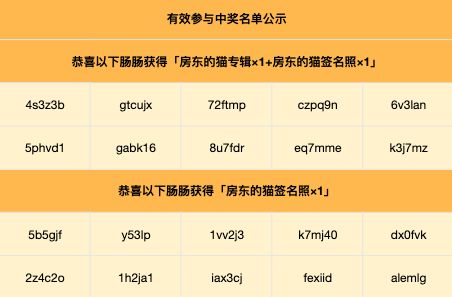 1、蛋卷将挑选10名用心参与活动的肠肠获得「房东的猫心意礼包」:房东的猫专辑×1+房东的猫签名照×1