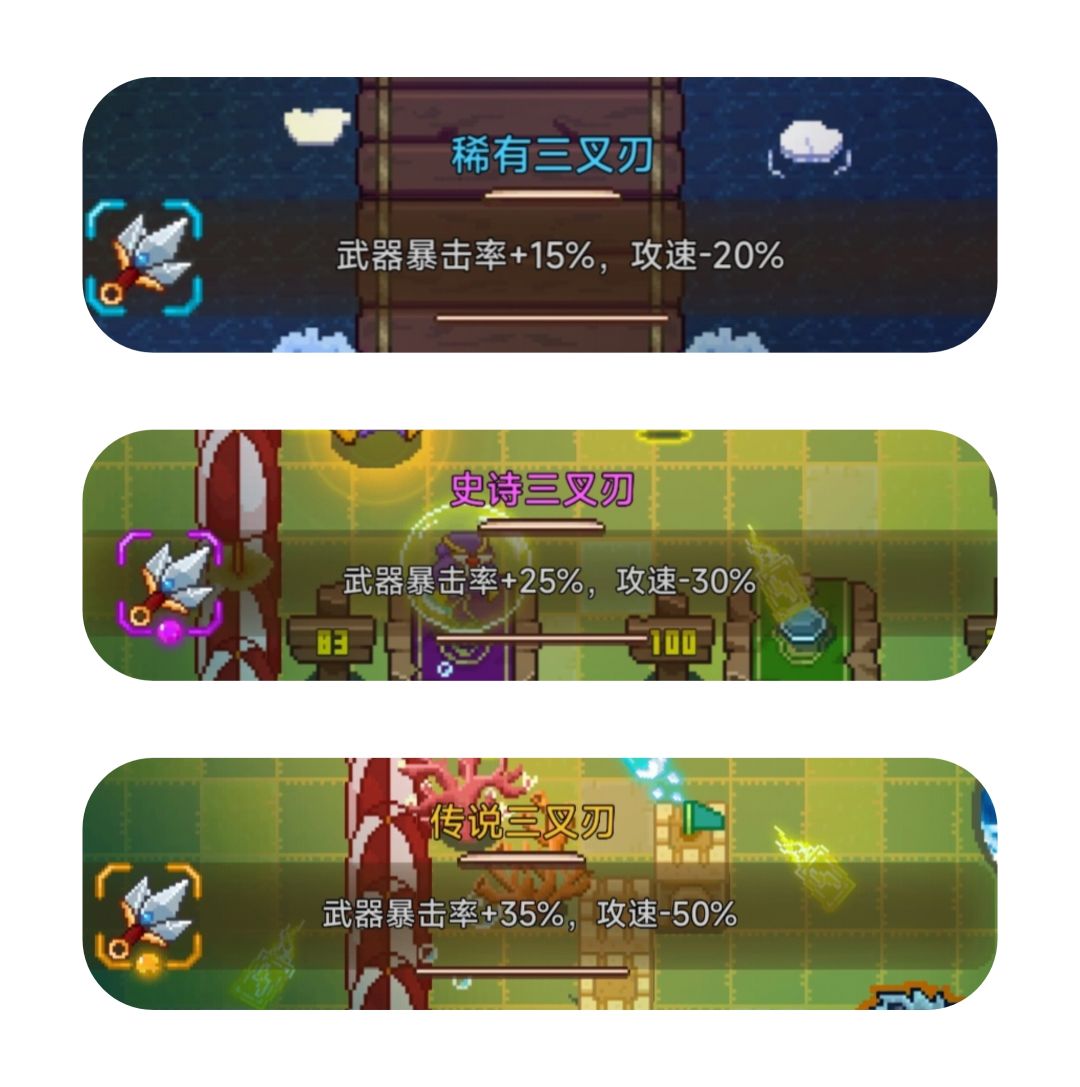 三叉刃:增加暴击率,减慢攻速