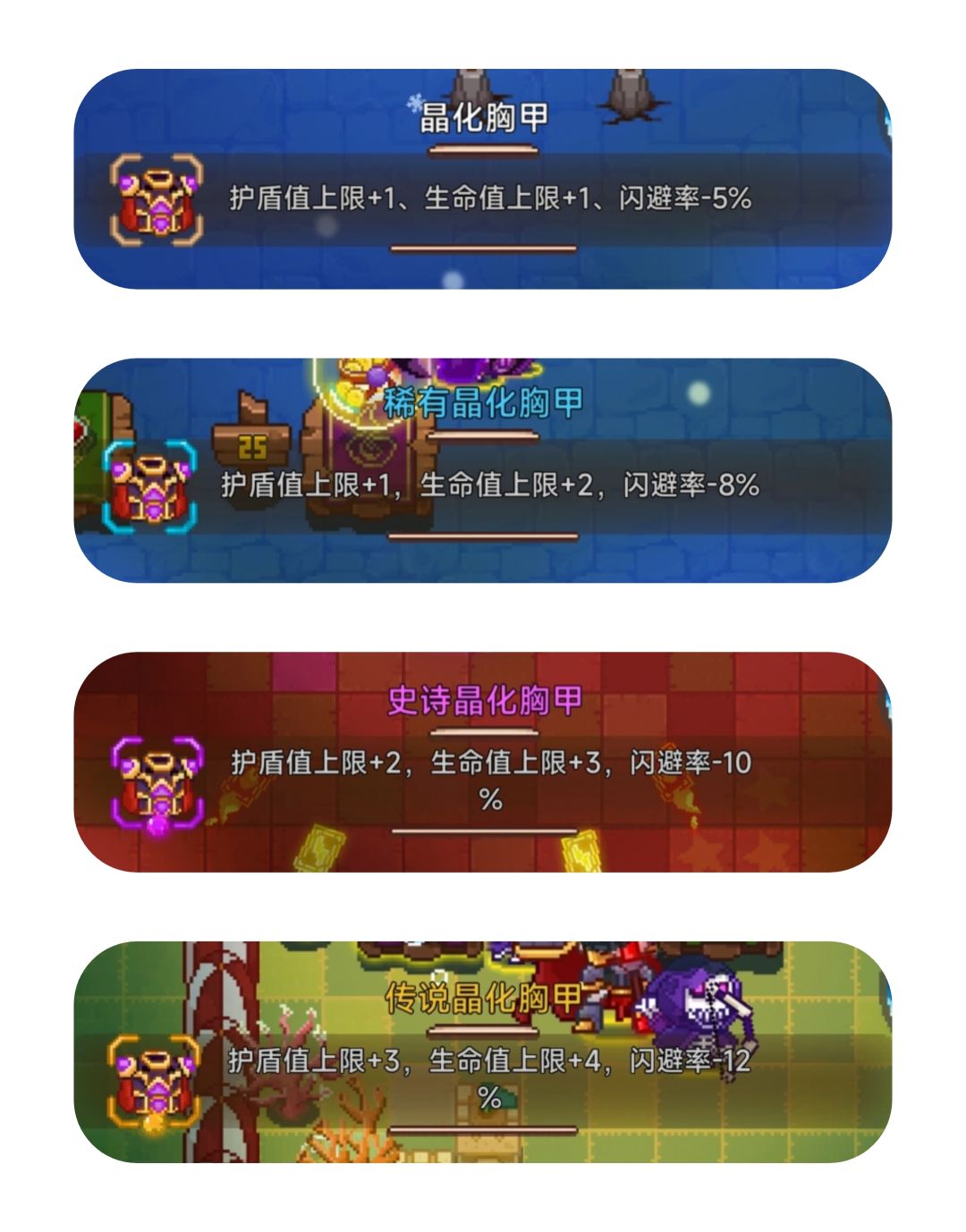 晶化胸甲:增加护盾、生命,减闪避