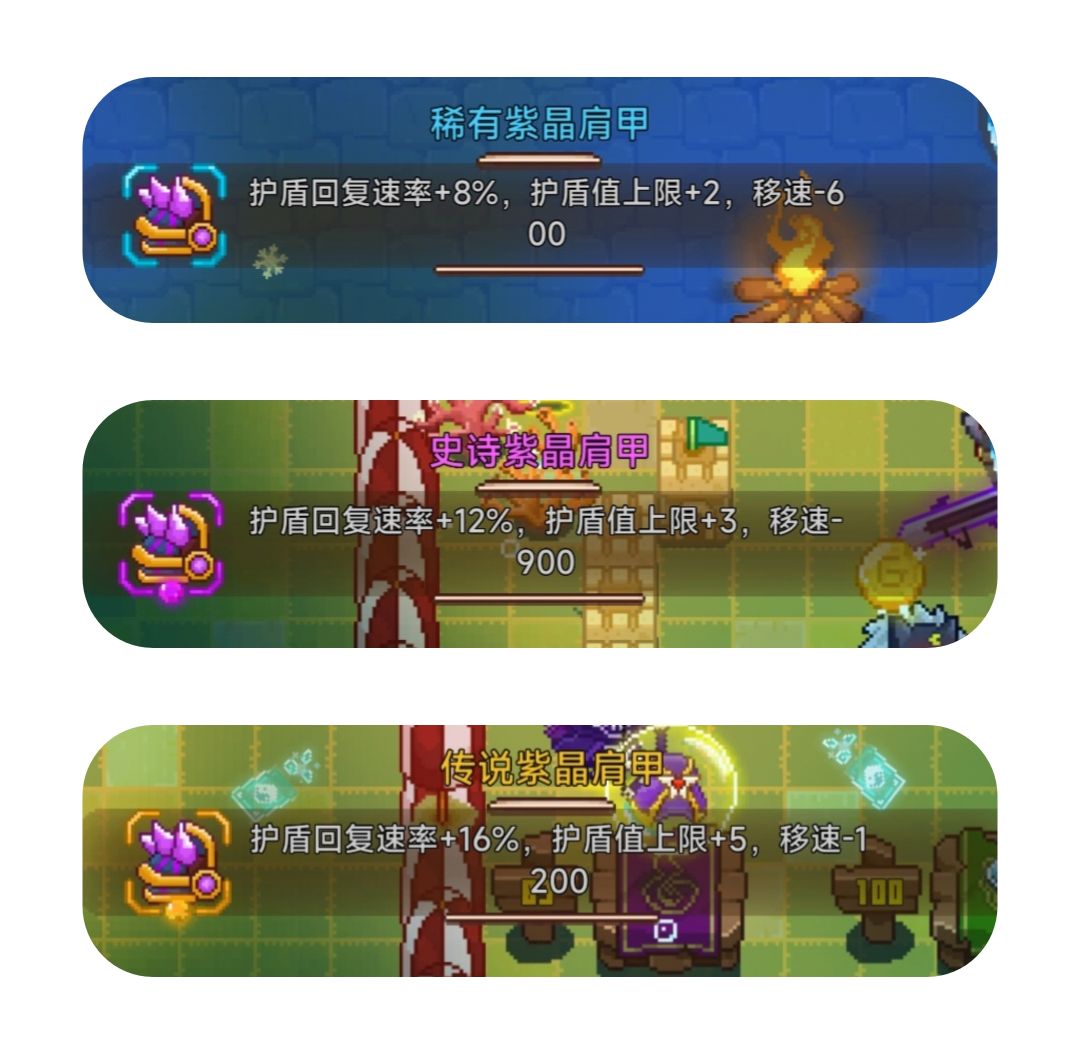 紫晶肩甲:增加护盾回复速率、护盾,减移速