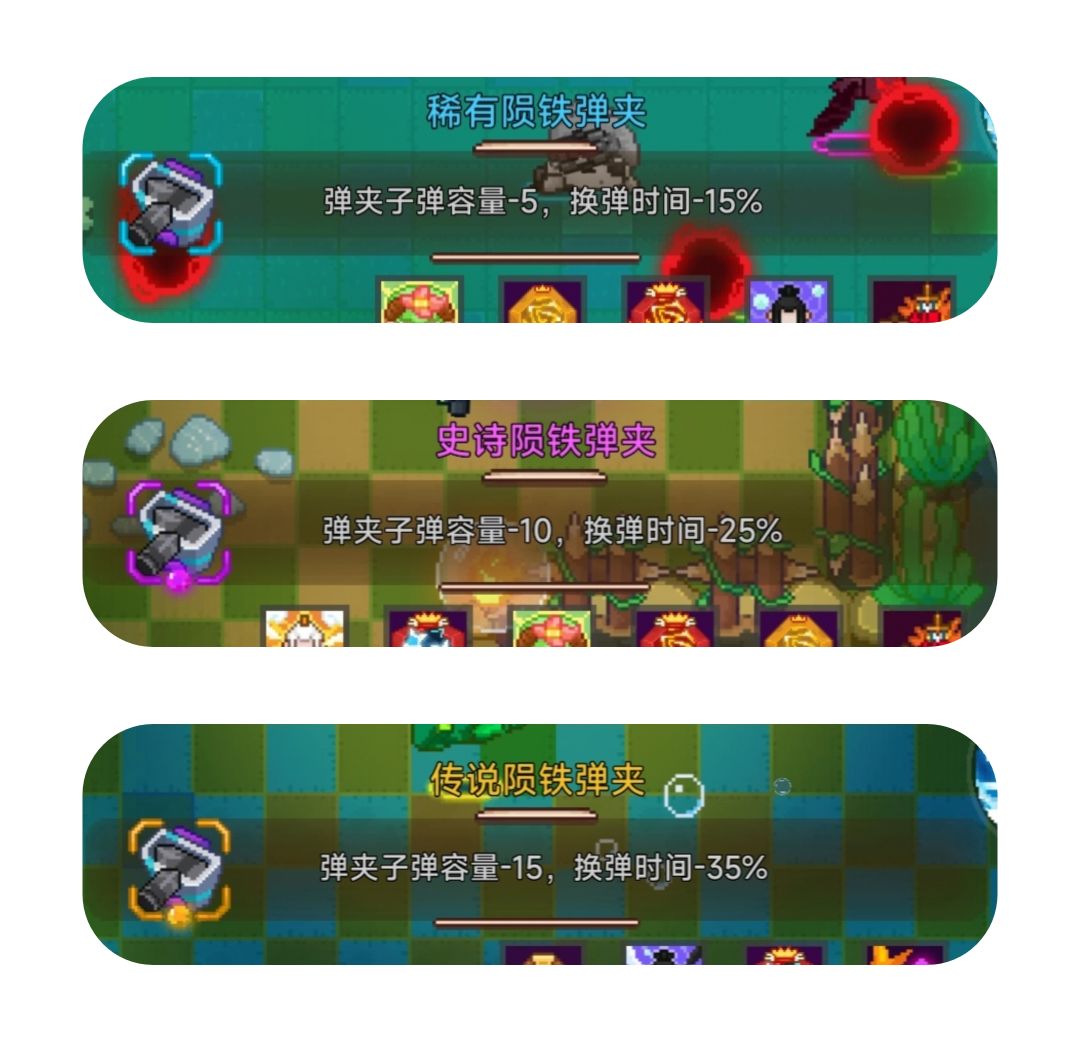 陨铁弹夹:缩减子弹容量,缩减换弹时间