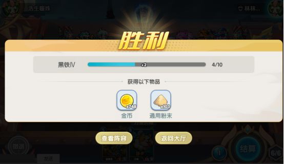 每轮对战不论输赢,皆可获得奖励,奖励包括金币,通用粉末,还有一定几率掉落加速卡等特殊道具