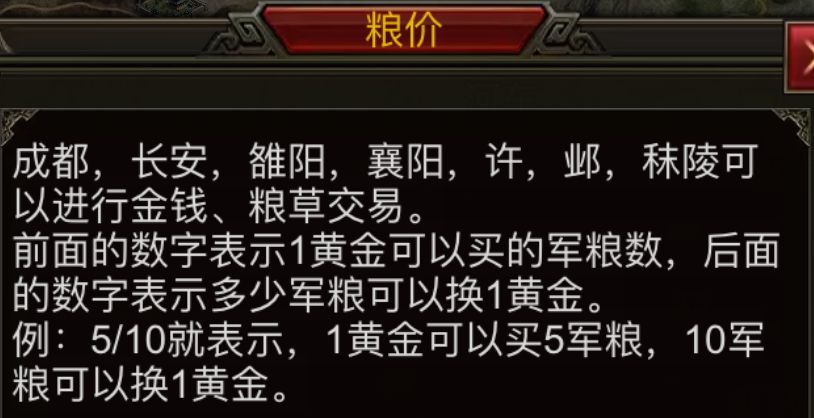 小技巧:受灾后的那个月粮价会大幅提高(适合卖粮),丰收后的那个月粮价会大幅降低(适合买粮)。