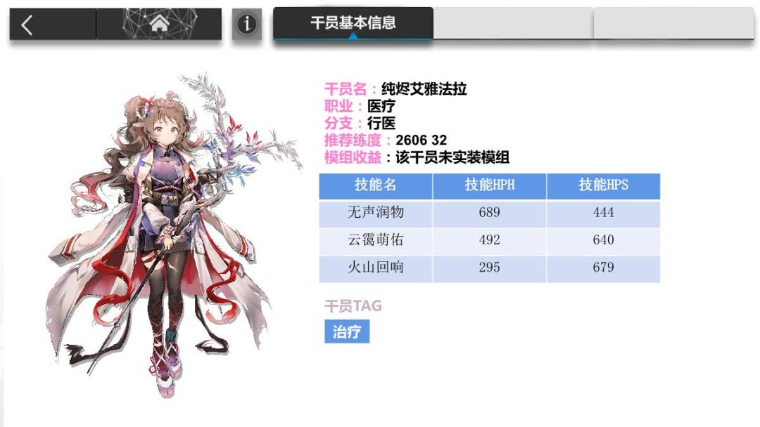 纯烬艾雅法拉十分契合当前版本,三个技能都有应用空间,若习惯带医疗推图,可以带来很好的使用体验。论机体强度,和之前实装的干员提丰一个道理,2.0版行医,甚至是行医这个分支的最终答案。