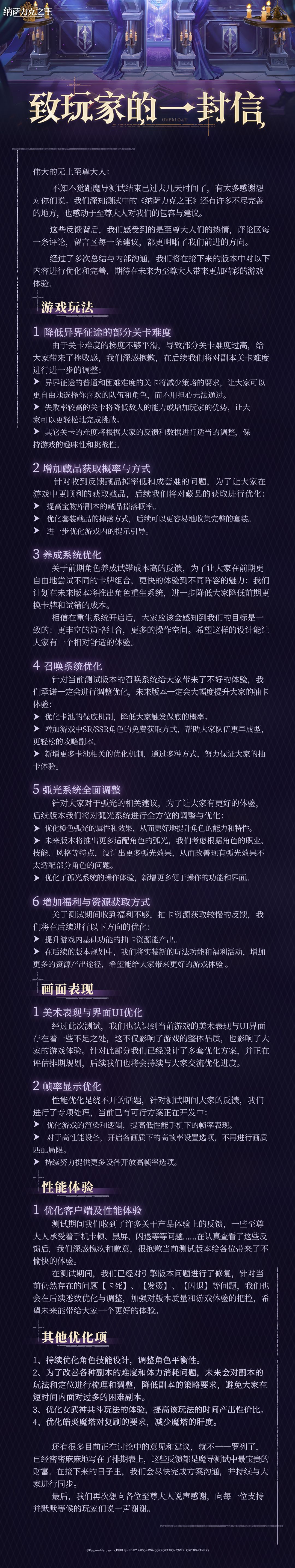 不知不觉距魔导测试结束已过去几天时间了,有太多感谢想对你们说。我们深知测试中的《纳萨力克之王》还有许多不尽完善的地方,也感动于至尊大人对我们的包容与建议。