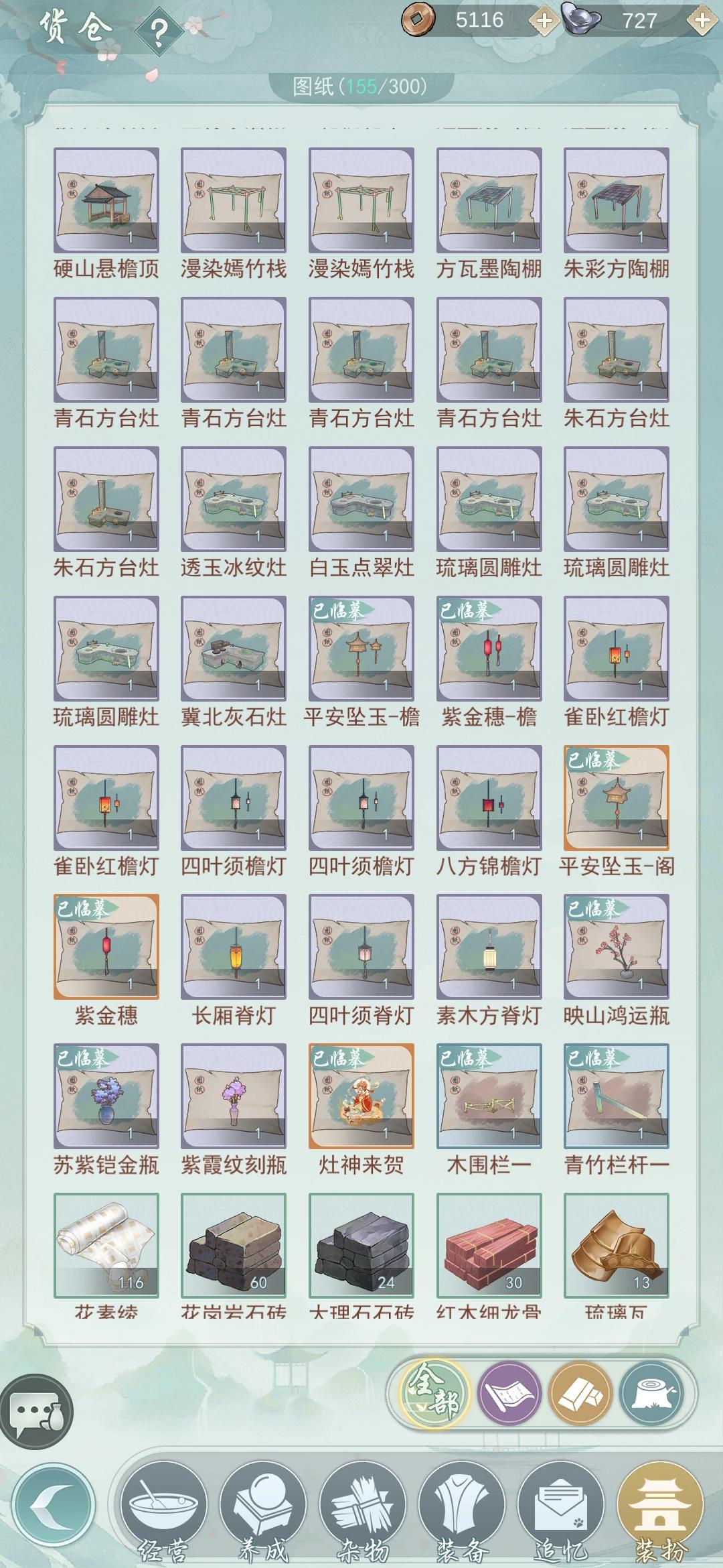 我有的图纸都在下面图片里了,只想要个墨蓝洒青柱,临摹的图纸只有一张不能换哦,其他图纸可以无限赠送,不会消失的,墨蓝洒青柱也是可以无限赠送的