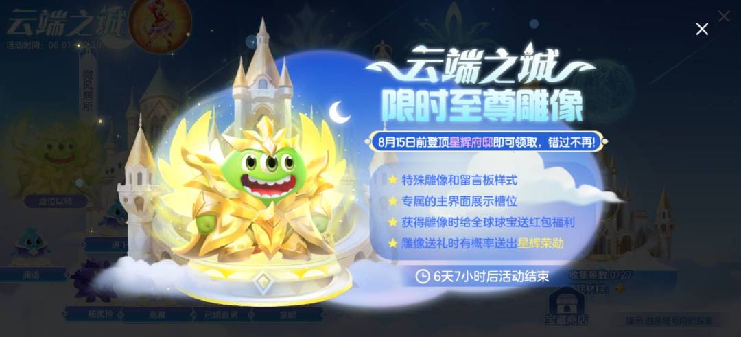 云端之城第四区域更新,超多奖励等你挖掘,听说了吗,现在可以用金蘑菇购买前进步数了哦,继续探索云端之城,获取奖励吧~