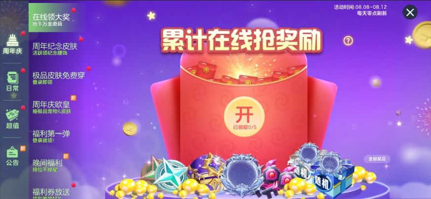 八周年庆冲段福利,指定时段排位不掉星、双倍保护分,周年庆轻松上超神!