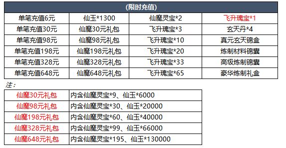4、2000充值豪礼:活动期间内如不需要道具3:可联系客服兑换《仙魔灵宝*100》、灰太狼、哮天犬、猩红魔蛛、化龙诀、兽神诀、鲲鹏、鸾鸟、驳、狡、玉兔、血神诀、上古丹书、太阴鬼典、五雷天书、万毒混元、赵千颖、彭越、循环石*40、八孔双异能胚子其中1个。