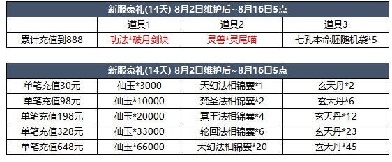 3、888充值豪礼:活动期间内如不需要道具3:可联系客服兑换《仙魔灵宝*50》、雷师叔、紫妍、欧阳倩、冉遗鱼、蓝思、煞魂术、八孔单异能胚子其中1个。
