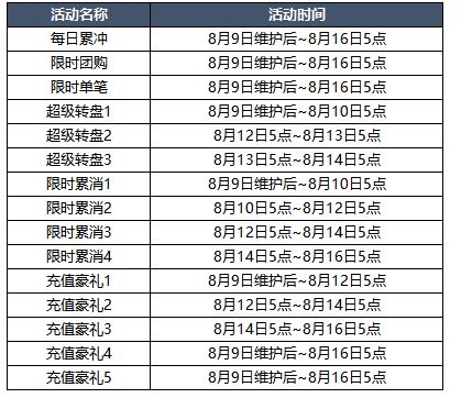 【活动时间】8月9日维护后~8月16日5点