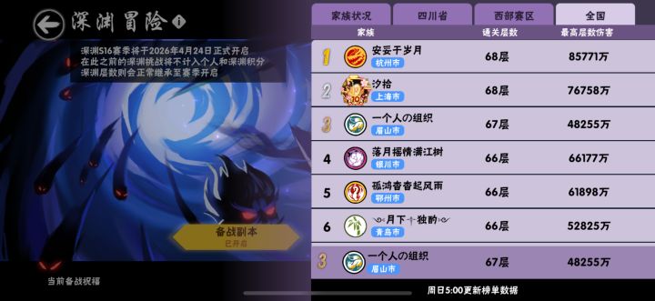 家族比较单机,欢迎深渊爱好者,族战不强制