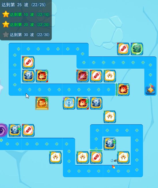 塔防5-6关卡整体难度不高,30波敌人只有一条进攻路线,根据怪物种类选择克制炮塔,并放置在合理位置才能输出最大化,三星过关即可获得矿石和功夫碎片奖励
