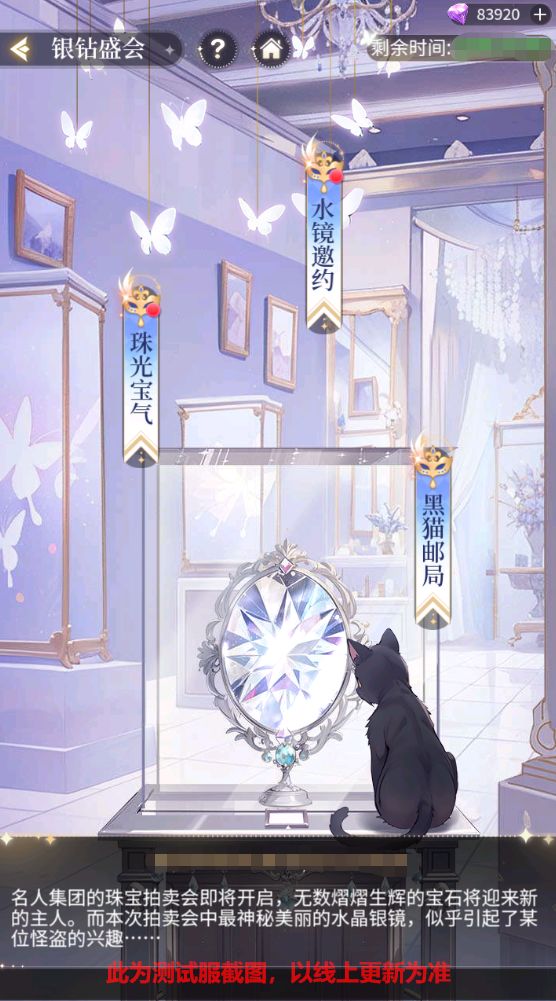 分为水镜邀约、黑猫邮局和珠光宝气三个活动