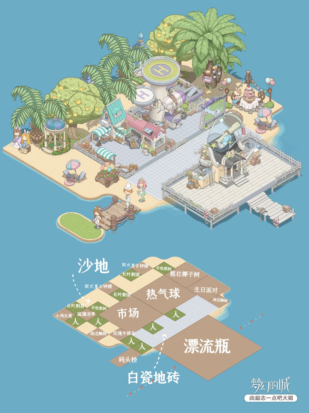 热气球站;漂流瓶中心;交易市场;