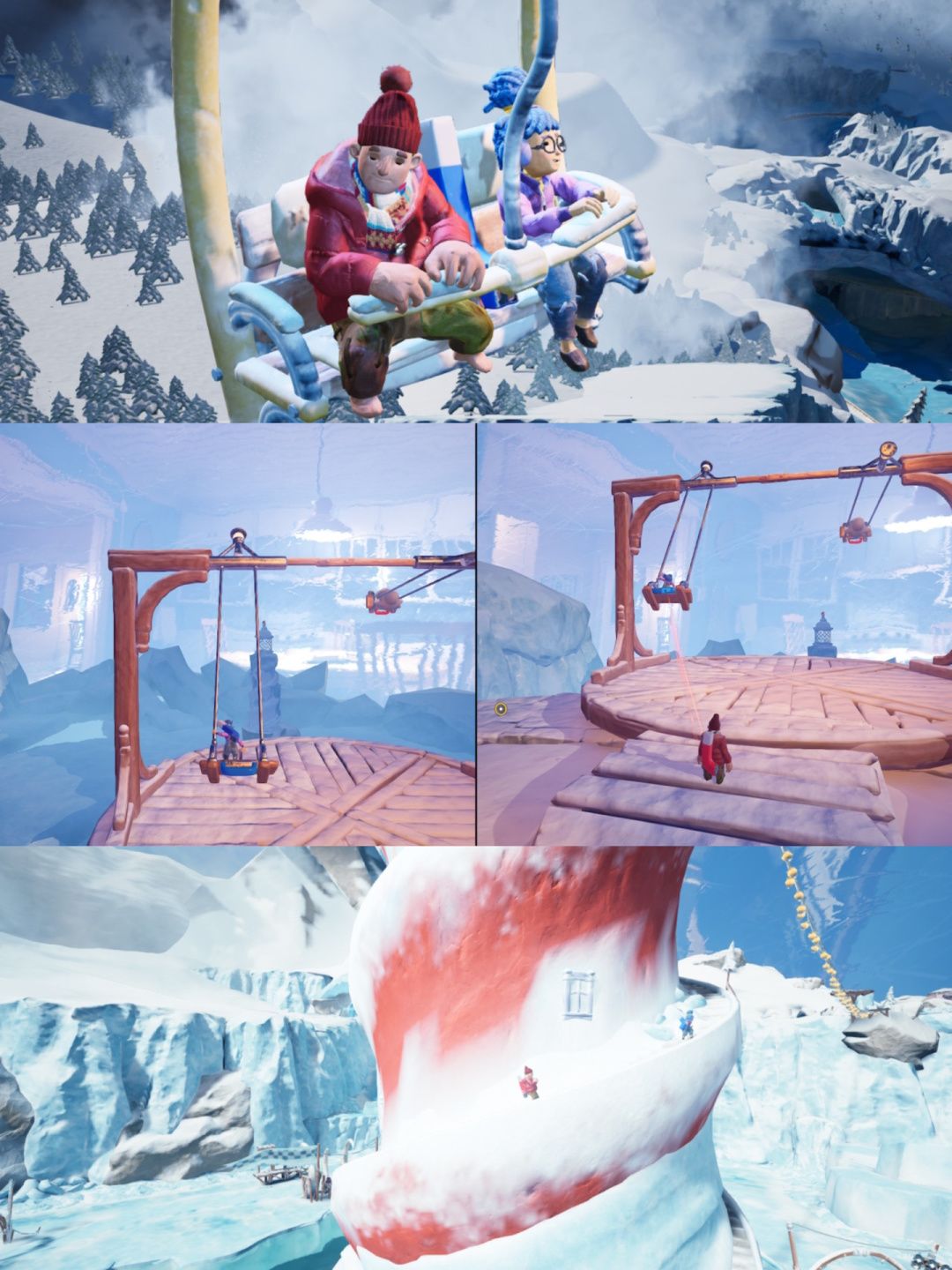 除了通关以外,小游戏和环境布置也很值得体验,经常是:我坐在小火车里游园,他在下一关入口等我;我在冰上潇洒驰骋,他在下一关入口等我;我在游乐场疯狂玩耍,他在下一关入口等我…像极了商场里坐在“老公等候区”的男人。看到别人发的很多非主线场景我都没有见过,比如钟楼章节的烟花塔和花园章节的桑拿屋,多刷有惊喜!