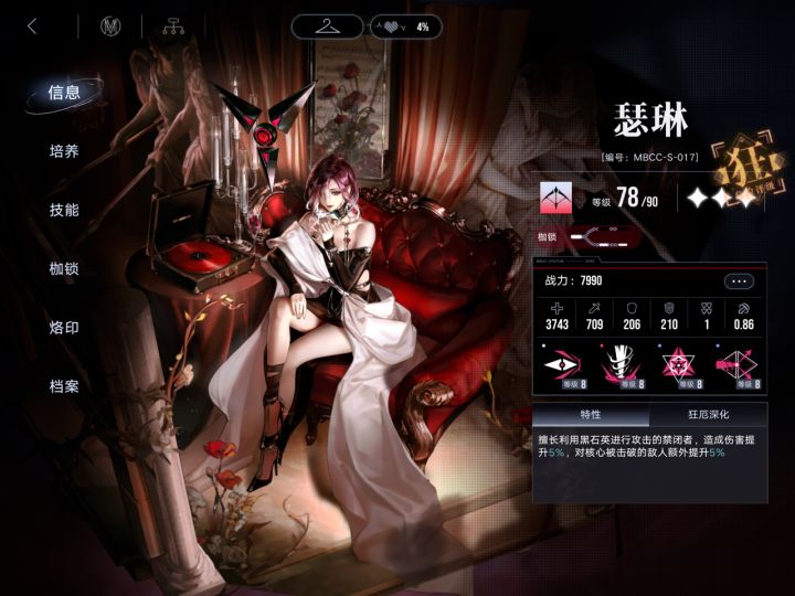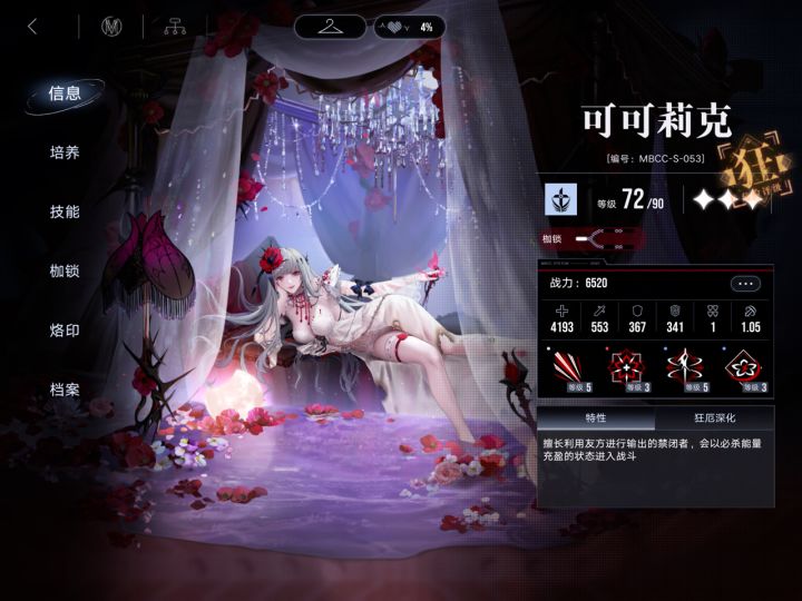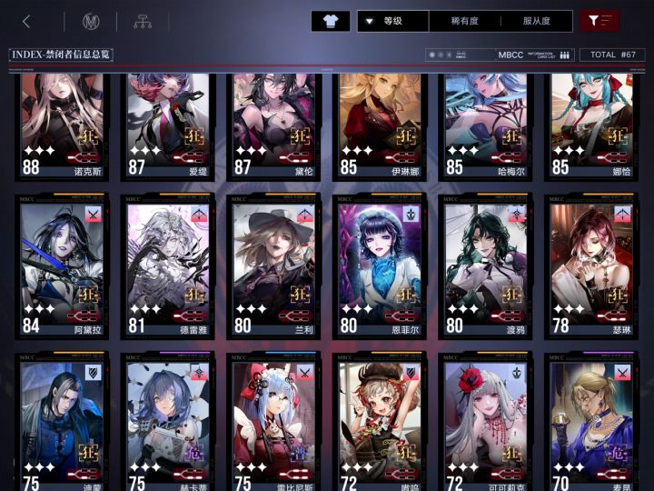 暗域周周72W摆烂养老选手练度如下,瑟琳3锁完全体可可1锁启用