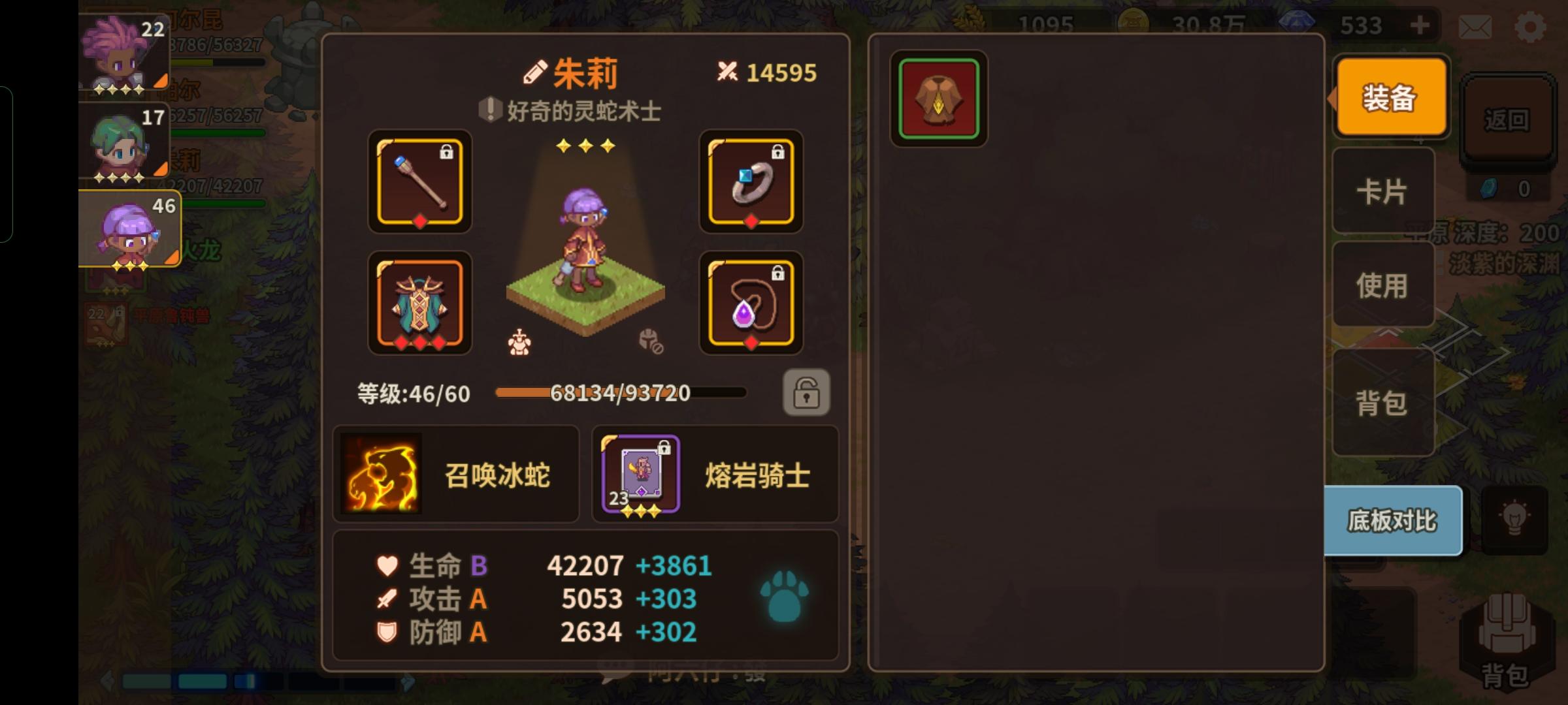 还有冰箭,还有个野猪,恐魔,想法搞个野猪冰箭换掉冰蛇,前排有点抗不住了,闪避有点不够😔