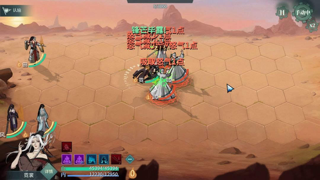 卡身法三行动位,优先使用技能秋水落霞