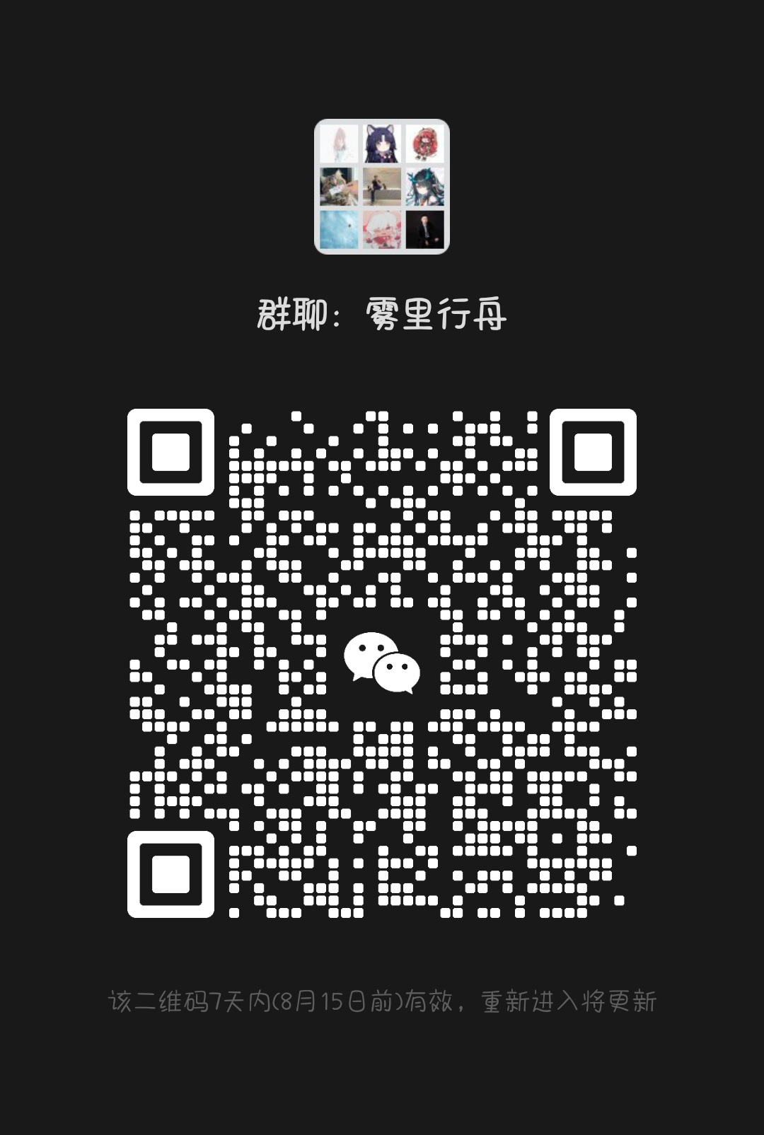 雾里行舟欢迎你,VX群哦,群内人不算多但是进了群你就知道群友们的和善了。快点进群吧早点进群早享受。