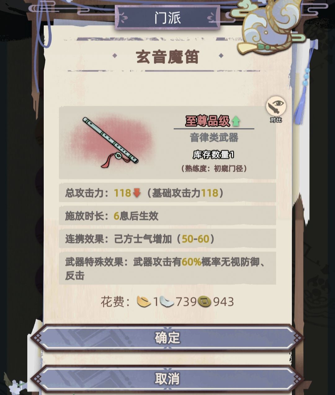 笛子的功法战斗效果有一个是“增加已方士气”。