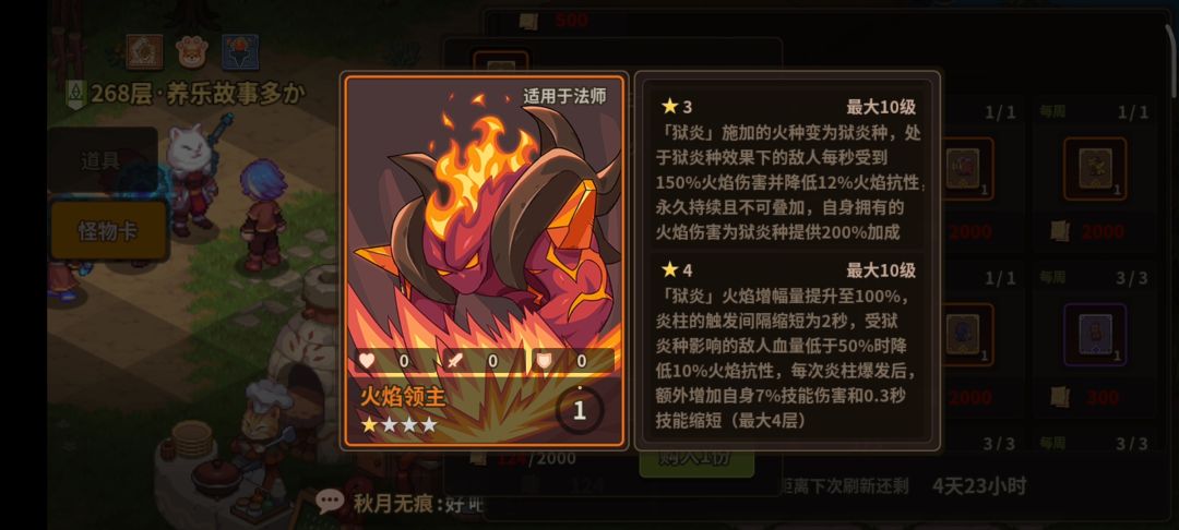 领主卡,这个开服到如今不被问津的卡片,作为橙卡,1.2秒冷却缩短还得8秒全部拿到,炎柱伤害最多叠加2次,就妥妥让领主卡打消耗战,但通过炎柱减抗,小火龙减抗,第二套技能开始也就是领主大火伤害的顶峰值,单卡片强度一般,只能在火队达到主c的目的。
