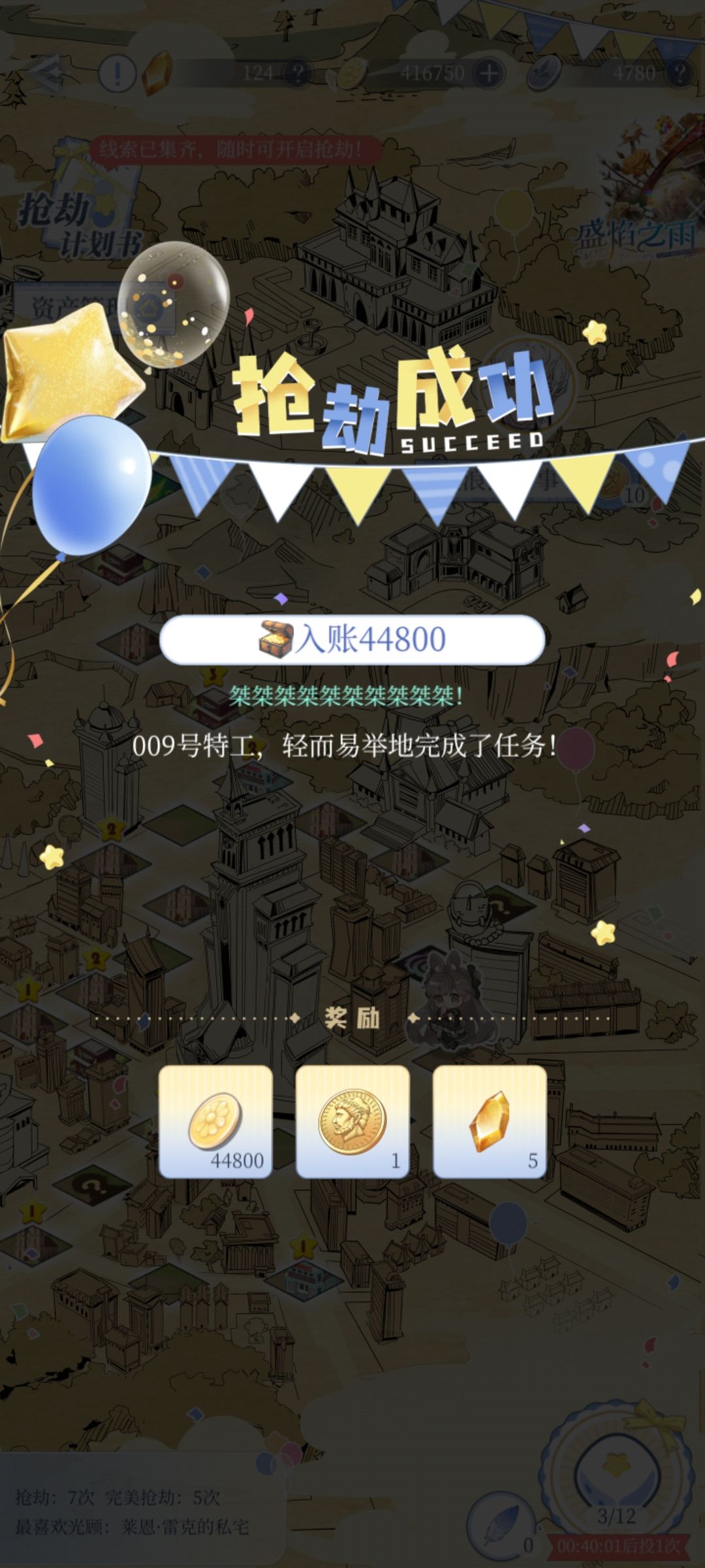 上次在莱恩那里抢,并没有100%成功,90%多的成功率,我记得是抢到2w多约兰币