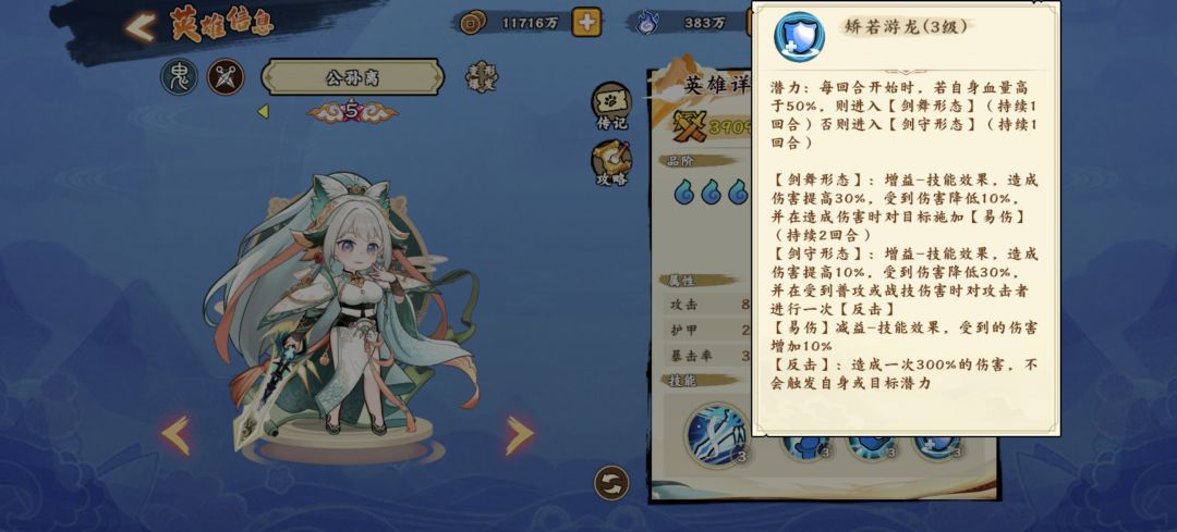 公孙离有剑守和剑舞两个形态。
