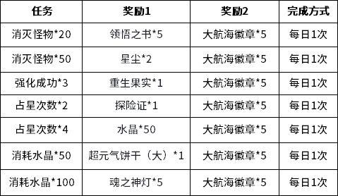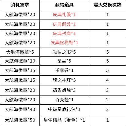 活动介绍:航海之路真是令人兴奋,相信大家已经收获满满啦,在这里使用获得的【大航海徽章】可以兑换道具奖励!