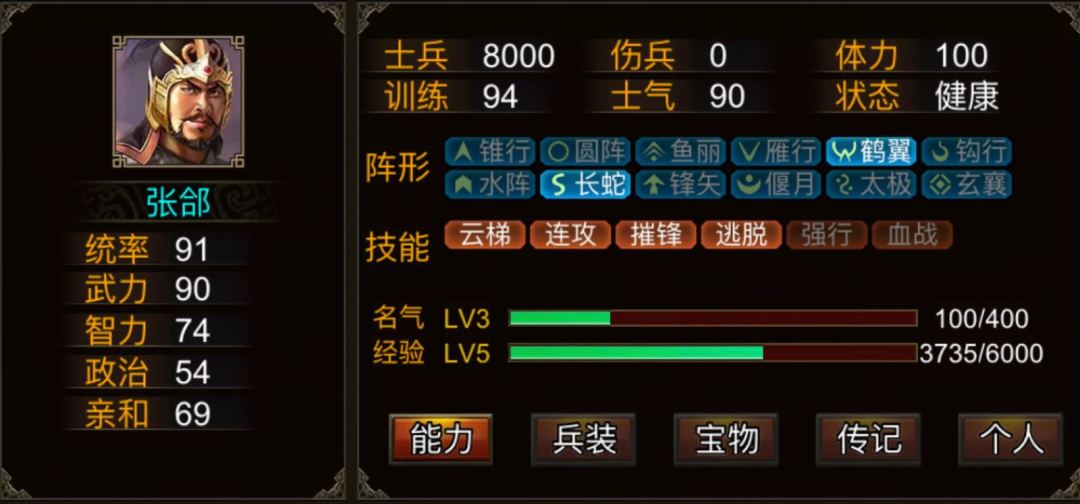 自带技能:云梯、连攻、摧锋、逃脱、强行、血战