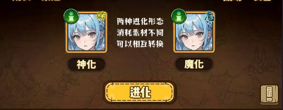 ※神化和魔化这两种进化形态之间可以互相转换,每次转换都会消耗一些特定的素材。