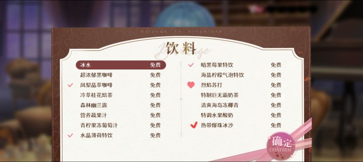 饮品:超浓郁黑咖啡,凤梨晶萃咖啡