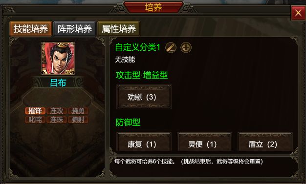 也可选择【军团】-【培养】,为武将培养技能、阵形和属性。
