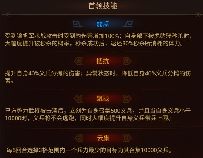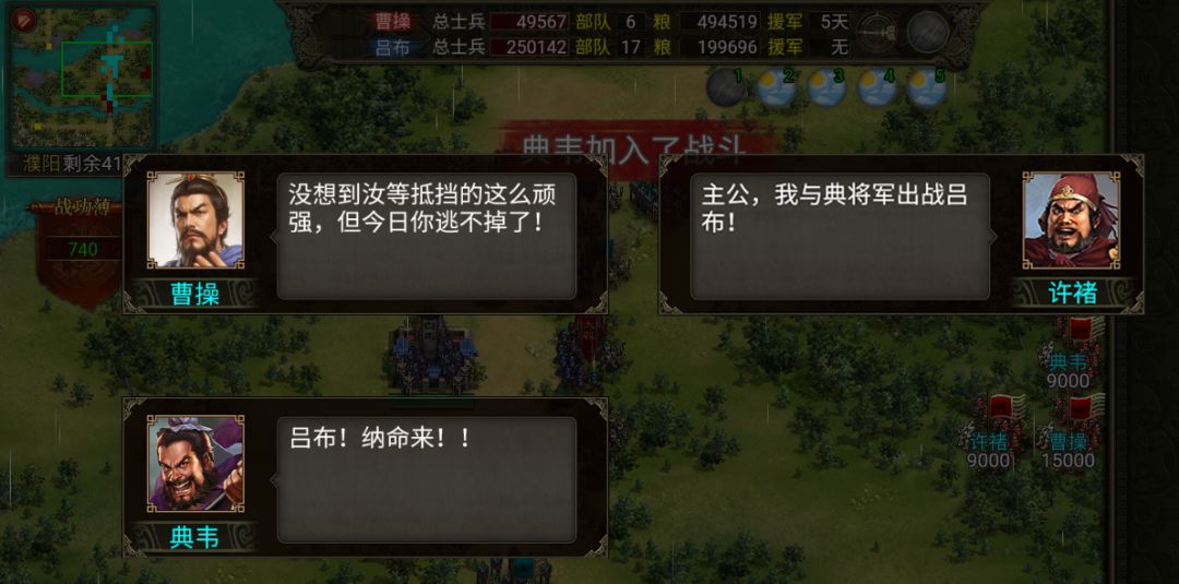 敌将:在本次“濮阳之战”中,部分敌军将拥有特殊技能。点击武将头像旁 “技” 的选项,即可查看其技能效果。