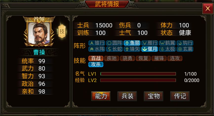 点击曹操头像旁 “技” 的选项,即可查看其首领技能。