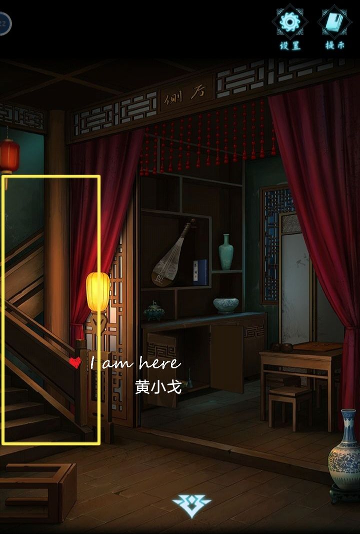 4.(二楼走廊尽头)点击柜子,调整上面的机关(根据小圆块上面的图案把罩子盖到对应的图案上)