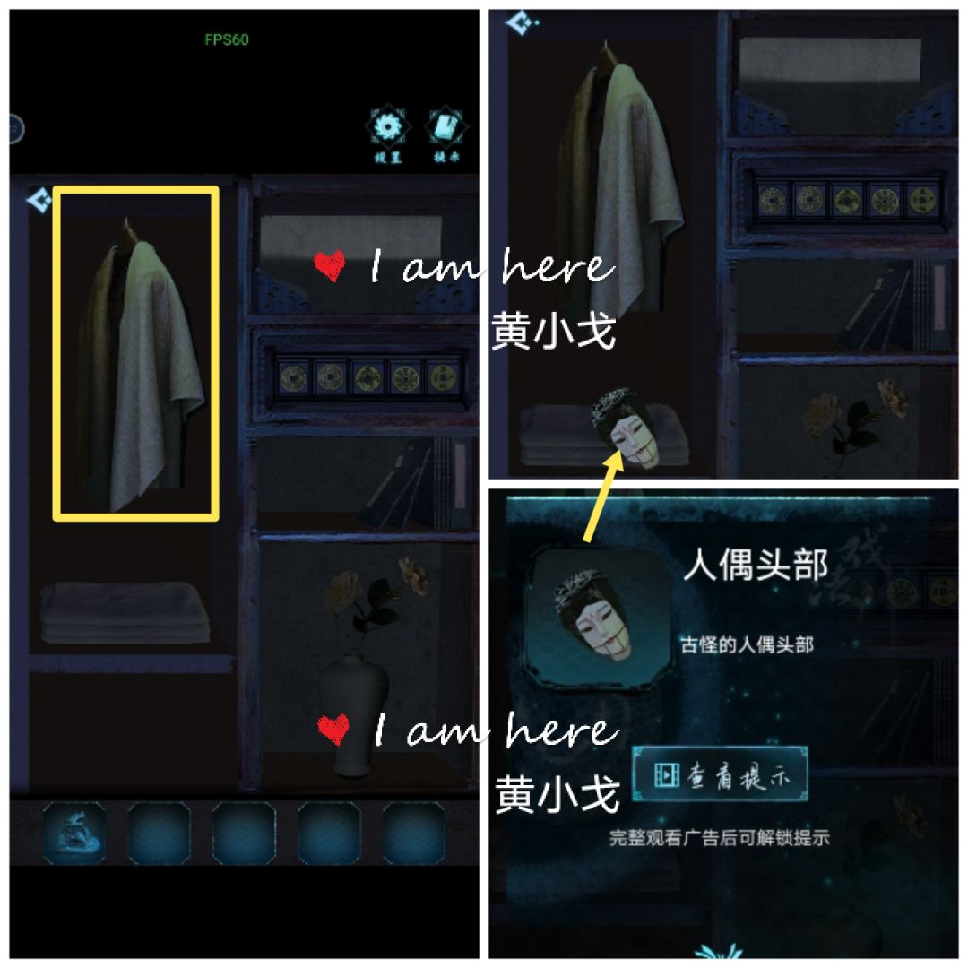 8.衣柜打开,点击衣服,获得【人偶头部】