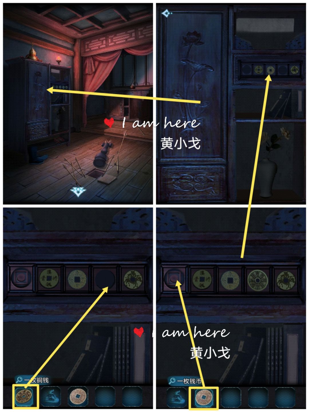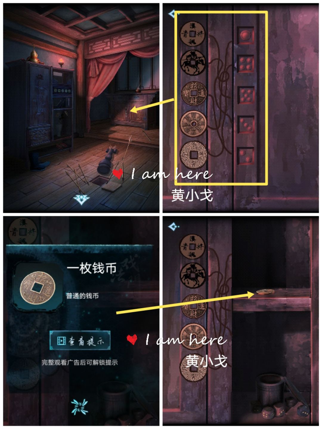 5.点击柜子,打开右边柜门,获得【一枚钱币】(注意看柜门上的线索)